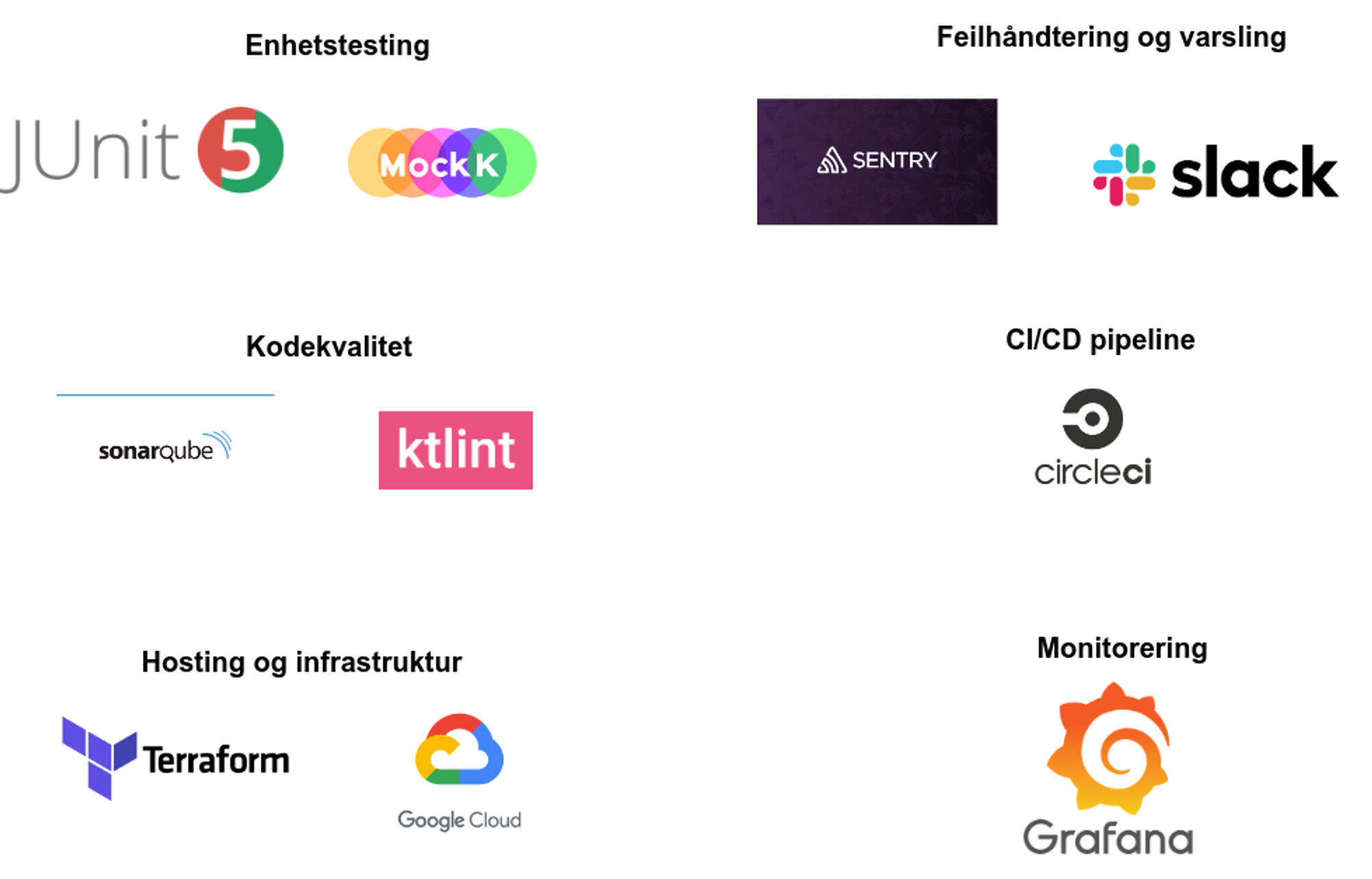 - Verktøy og prosesser for å sørge for god kodekvalitet.